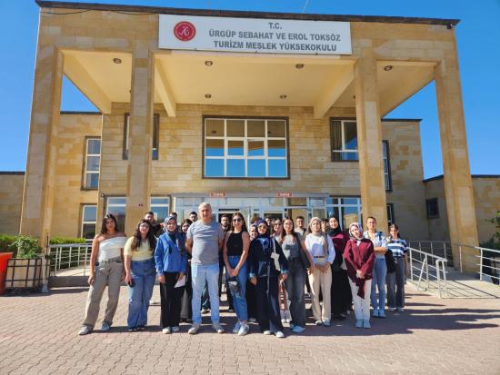 Oryantasyon etkinliklerinin devamında, 26 Eylül – 3 Ekim 2025 tarihleri arasında Turizm ve Otel İşletmeciliği ile Aşçılık Programı öğrencilerine yönelik Avanos tanıtım gezileri düzenlendi. Öğrenciler, Saklı Mağara Çanak Atölyesi’nde çanak yapım sürecini uygulamalı olarak gözlemledi; bir öğrenci ise usta Ali ÇARECİ rehberliğinde çanak yapımını deneyimledi. Ardından Yaşayan Kültürel Miras Evi ziyaret edilerek Kapadokya Bölgesi’nin somut ve soyut kültürel miras unsurları tanıtıldı ve geleneksel Hacivat-Karagöz gösterisi izlendi.