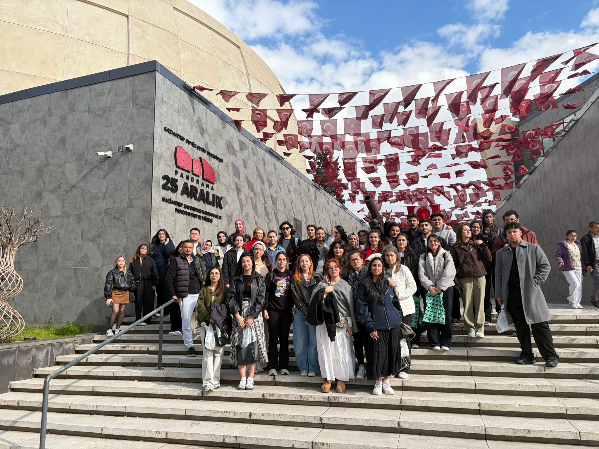 Programın devamında öğrencilerimiz, Emine Göğüş Mutfak Sanatları Müzesi’nde yöresel yemekler hakkında bilgi edinmiş; Hamam Müzesi ve Panorama 25 Aralık Müzesi’ni ziyaret etmiştir. Panorama 25 Aralık Müzesi’nde Gaziantep’in düşman kuşatmasına karşı verdiği kahramanca mücadelenin hikâyesi dinlenmiş, öğrencilerimiz milli birlik ve beraberlik ruhunun önemini bir kez daha idrak ederek duygusal anlar yaşamıştır.